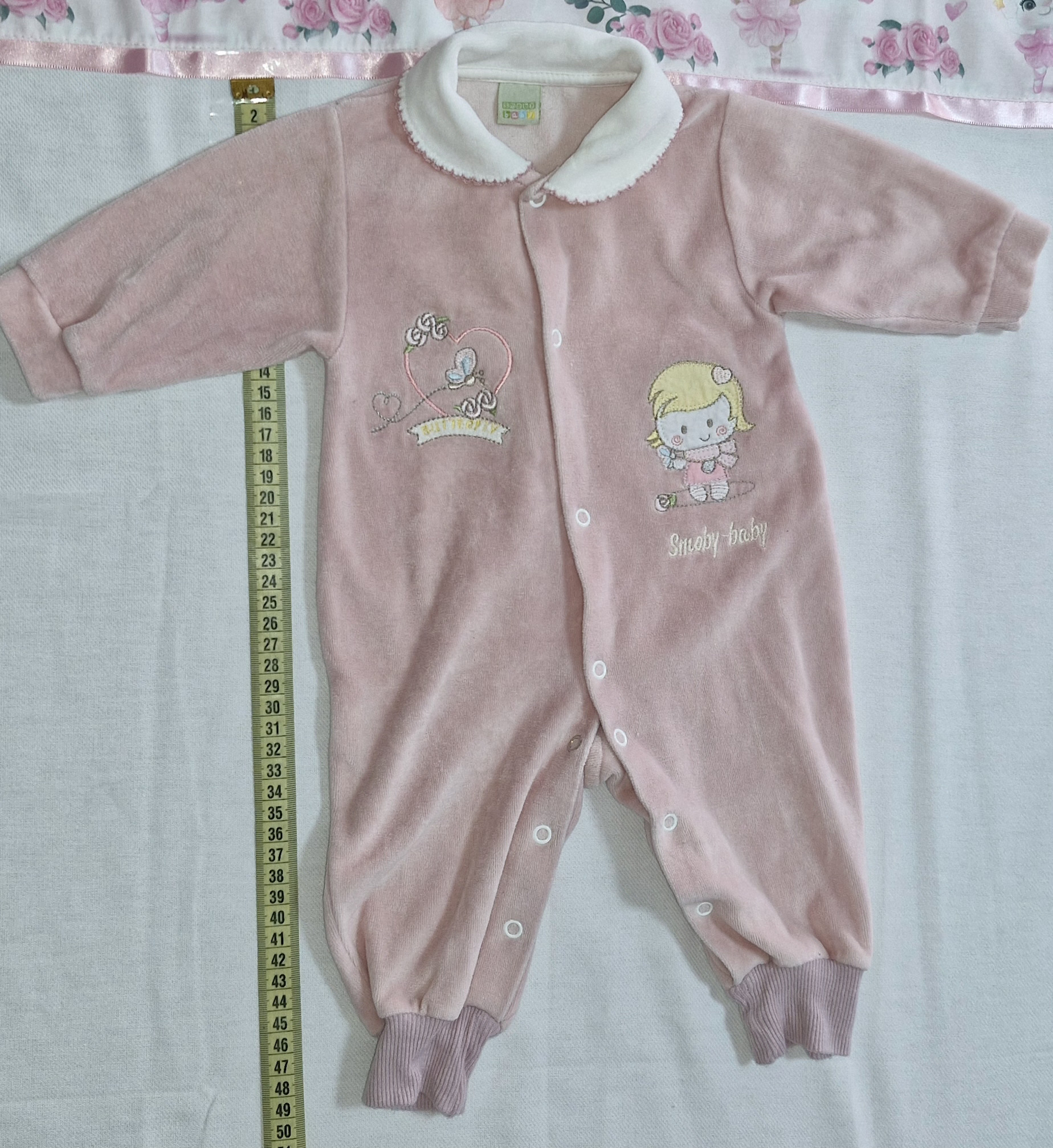 Macacaozinho rose mangas compridas e com desenhos bordados (47 cm aproximadamente) – PEÇA ÚNICA